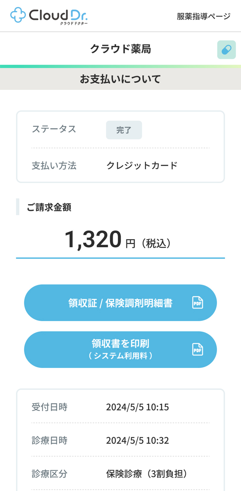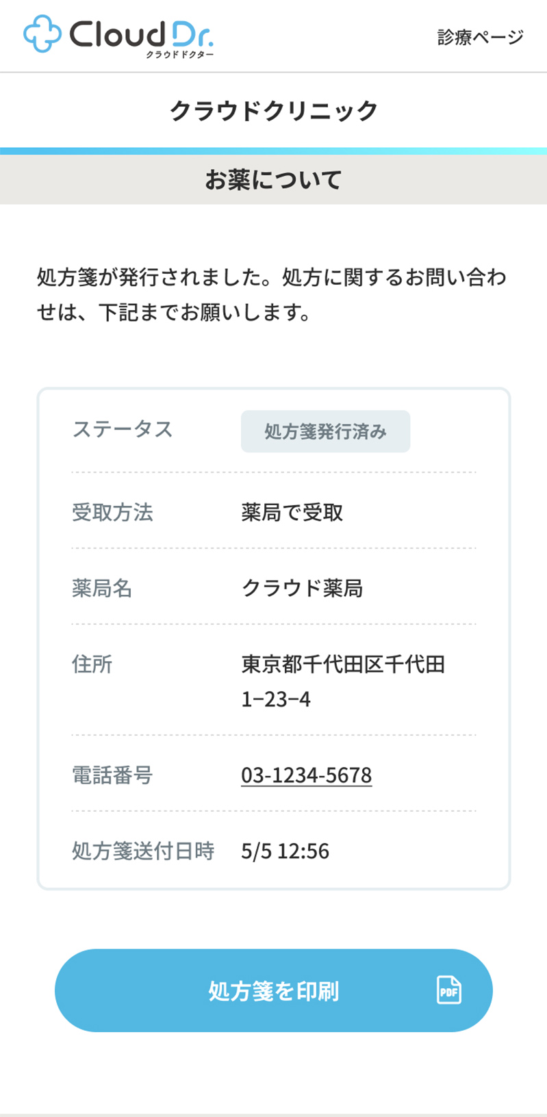 - 処方箋が発行された場合、薬局への処方箋送付料として220円(税込)が必要となります。
