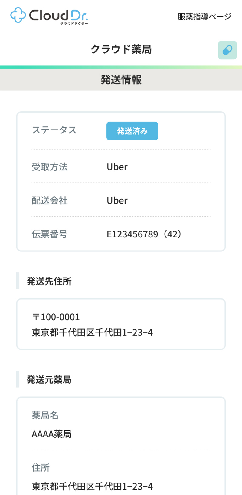 服薬指導時に薬剤師までご確認ください。 - Uber配送など、一部地域でのみ提供している配送方法があります。